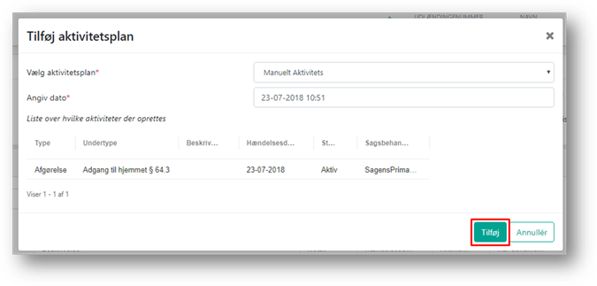Du tilføjer aktivitetsplanen på sagen, ved at klikke på