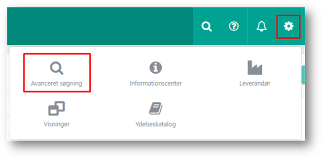 Du åbner avanceret søgning via tandhjulsikonet i navigationsbaren.