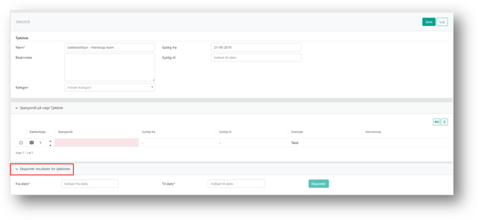 Du kan eksportere resultater fra tjeklister i systemet.
