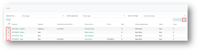 annullere og markere de sager, du ønsker eksporteret på sagslisten.