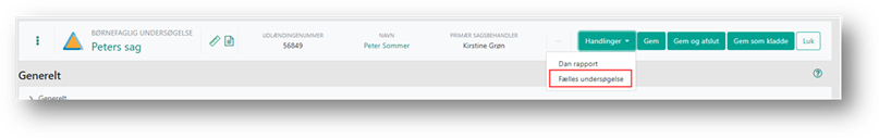Du gør en børnefaglig undersøgelse fælles ved at klikke på ’Handlinger’-menuen og vælge ’Fælles undersøgelse’.