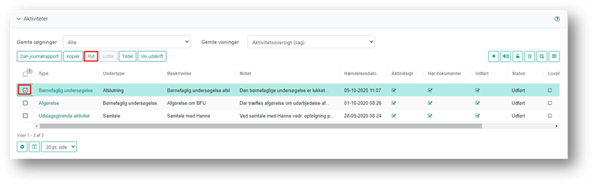 Efter du har søgt sagen frem, klikker du på knappen ”Flyt aktiviteter”.