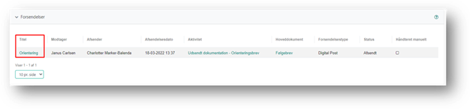 Fra fanen Forsendelser kan du åbne detaljesiden for forsendelsen, ved at klikke på linket i kolonnen Titel.