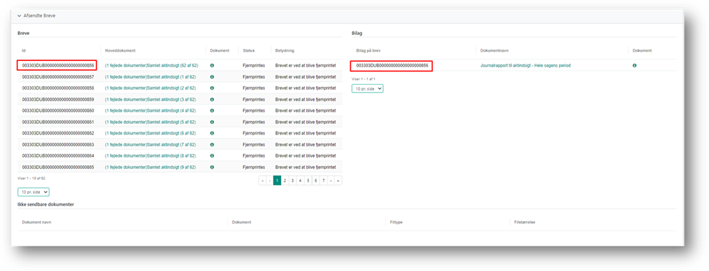 Hvis der er sendt mere end et dokument i samme forsendelse, vil de resterende dokumenter fremgå af Bilag, medmindre den samlede forsendelse kommer over størrelsesbegrænsningen og dokumenterne bliver opdelt i flere breve.
