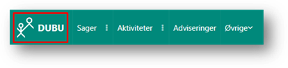 Uanset hvor du er i DUBU vil det være muligt at åbne forsiden. Du åbner forsiden ved at klikke på DUBU-ikonet øverst til venstre i skærmbilledet.