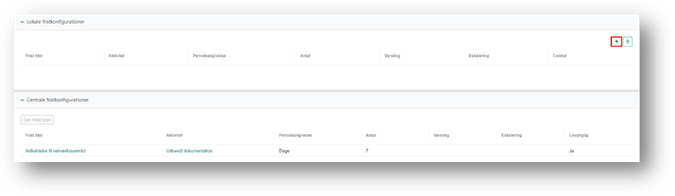 Det er muligt for dig, som superbruger, at tilføje ekstra frister til den centrale aktivitetsplan, men du kan ikke slette eller redigere centrale frister. Hvordan du tilføjer ekstra frister, fungerer på samme måde som oprettelsen beskrevet under Lokale aktivitetsplaner.