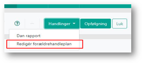 For at kunne genåbne handleplaner, skal du have rettigheden Handleplan.Genaabn. Hvis du har rettigheden, vil du i forældrehandleplanen, under Handlinger have knappen Redigér handleplan.