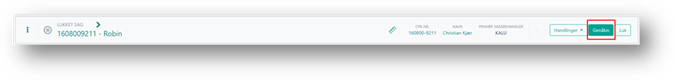 I sagsmenuen vil du på en Lukket sag kunne genåbne sagen, ved at klikke på knappen Genåbn.