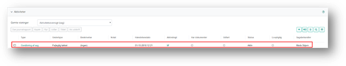 oprettet aktiviteten Genåbning af sag, med den valgte årsag som undertype.