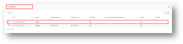 På oversigten kan du se de eksisterende handleplaner på sagen, samt informationer om de enkelte handleplaner. Du går ind på handleplanen, ved at klikke på titlen.