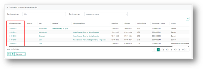 Du åbner en indberetning for indsatser og støtte, ved at klikke på Indberetningsdato.