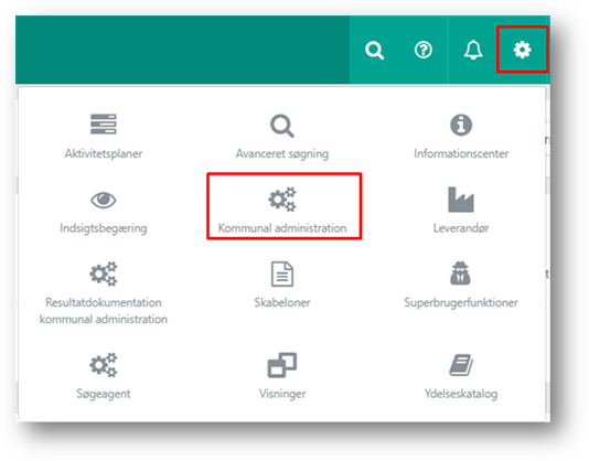 Kommunal administration åbnes via Indstillinger i navigationsbjælken.