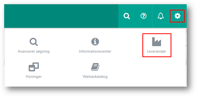Du åbner leverandøroversigten via tandhjulsikonet i navigationsbjælken.
