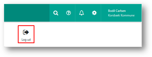 Du logger ud af DUBU ved at klikke på brugernavn og kommune i navigationsbjælken.