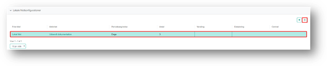 Du sletter en frist ved at klikke på linjen (dog ikke