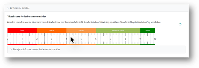 For at afgive en trivselsscore inden for et af de lovbestemte områder klikker du et sted på trivselslinealen der svarer til barnets vurderede trivsel.