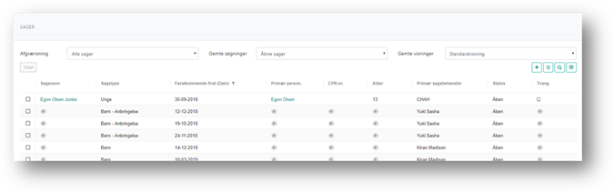 hvor du er sagsbehandler, eller sekundær sagsbehandler, samt hvis du er oprettet