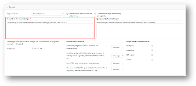 Du skal angive begrundelse for underretningen. Teksten fra dette felt vil fremgå af underretningsaktiviteten i modtagerkommunen.