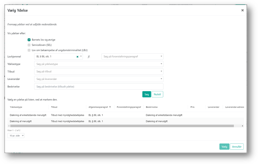Du opretter en merudgiftsydelse ved at vælge en af følgende ydelser: