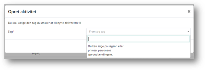 hvilken sag aktiviteten skal oprettes på.