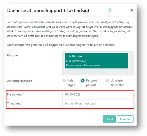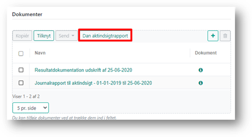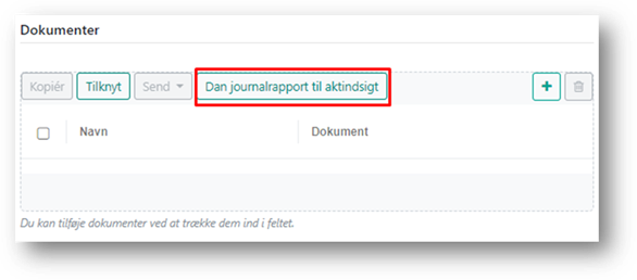Du danner journalrapporten til aktindsigten ved at klikke på knappen ’Dan journalrapport til aktindsigt’.