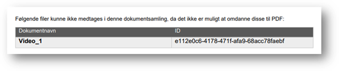 Såfremt der ligger dokumenter på sagen, der ikke kan konverteres til PDF, vil disse fremgå af en oversigt i det genererede dokument.