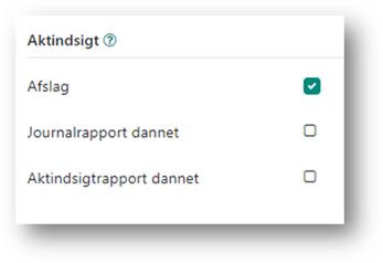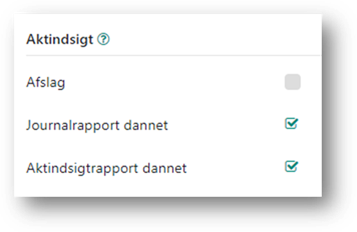 Når du fra aktiviteten har oprettet journalrapport og aktindsigtsrapport, markerer systemet automatisk felterne, for henholdsvis Journalrapport dannet, og Aktindsigtsrapport dannet.