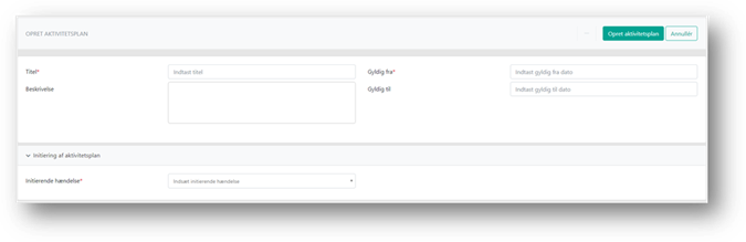 •Opsætning af planaktiviteter, hvor du kan tilføje de aktiviteter der oprettes af aktivitetsplanen.