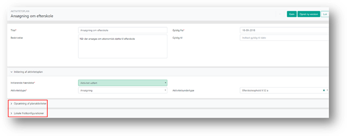 •Lokale fristkonfigurationer, hvor du kan oprette frister til aktivitetsplanen.