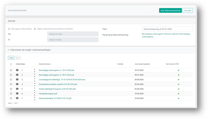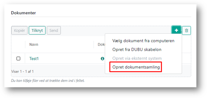Du afslutter oprettelsen af dokumentsamlingen ved at klikke på ’Dan dokumentsamling’ i topmenuen.