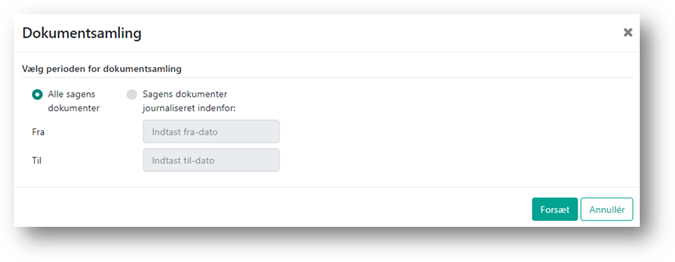 Du skal vælge om dokumentsamlingen skal oprettes for alle dokumenter på sagen eller for en bestemt periode.