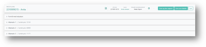 For at færdiggøre din indstilling, trykker du på knappen ’Gem og dan rapport’. Hvis du vil gemme dit arbejde og vende tilbage senere, trykker du på ’Gem som kladde’.