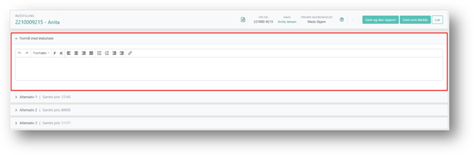 Du skal i Indstillingen angive ’Formål med indsatsen’, herunder beskrive, hvilke behov de forskellige indstillingsalternativer søger at dække.