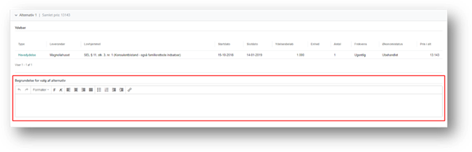 For hvert alternativ kan du give en begrundelse for valg af det pågældende alternativ.