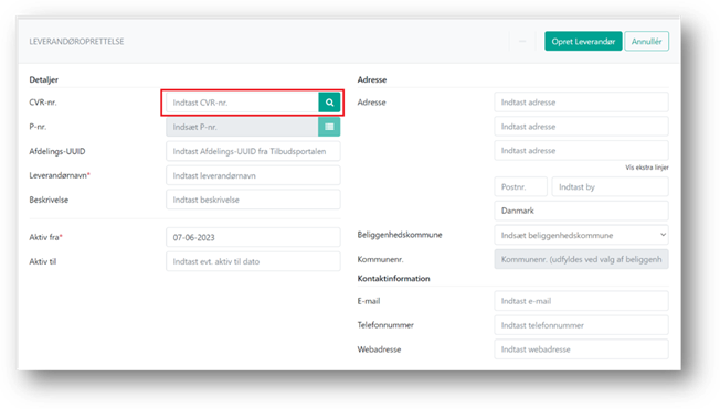 leverandøren et CVR-nr., bør du oprette via det. Når du udfylder CVR-nr. for