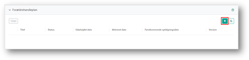 Når du klikker på Opret, oprettes en forældrehandleplan på sagen, som nu kan åbnes og er klar til at blive udarbejdet.