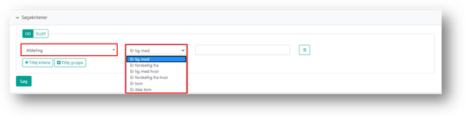 Når der vælges en af valgmulighederne i rullemenuen ved søgekriteriet, skal det sidste felt udfyldes for at søgningen kan foretages.