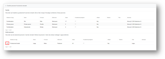 Under familie, kan du se de personer i barnets familie, der automatisk bliver overført sammen med sagen.