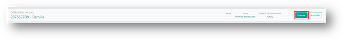 Når du har udvalgt al sagsmateriale som er relevant, skal du klikke på Overfør i sagsmenuen.