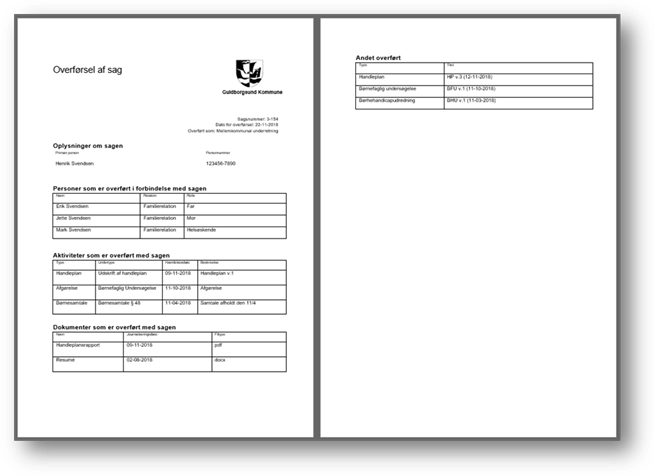 •Sagsnummer, dato for overførsel af sagen samt typen af overførsel