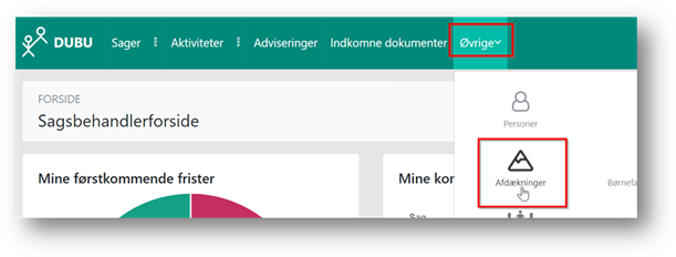 Du kan let få et samlet overblik over afdækninger på dine sager via oversigten over afdækninger på tværs af sager. Den finder du under ”Øvrige” øverst i DUBU, og derefter skal du klikke på ikonet for ”Afdækninger”.