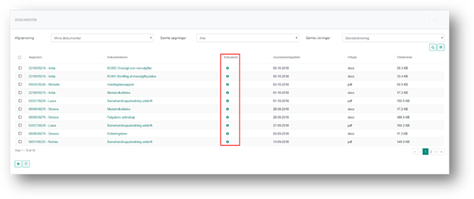 Fra oversigten kan du også åbne det enkelte dokument, ved at klikke på linket i kolonnen Dokumentnavn.