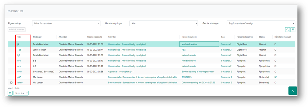 Fra oversigten kan du åbne den enkelte forsendelse, vil at klikke på linket i kolonnen Titel.