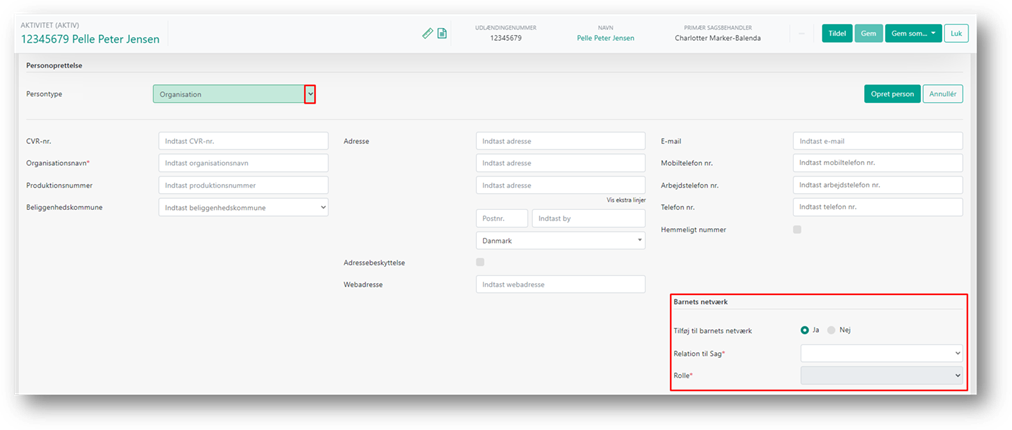 Derudover har du mulighed for at angive, at personen skal tilføjes til ’Barnets netværk’.