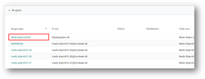 Ønsker du at redigere eller inaktivere en eksisterende bruger, vælger du den ønskede bruger under fanen brugere.