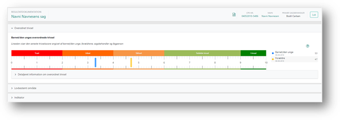 Alle tre faner er overordnet opbygget på samme måde med to elementer: en trivselslineal og en underfane med detaljeret information.