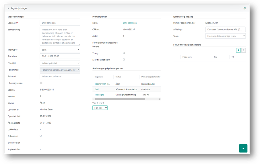 Andre sager på primær person – er et link til andre sager på primær person. Det kan være lukkede sager eller sager i andre afdelinger.