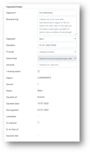 Sagsnavn – her kan sagsnavnet redigeres, hvis det er behov efter sagens oprettelse.