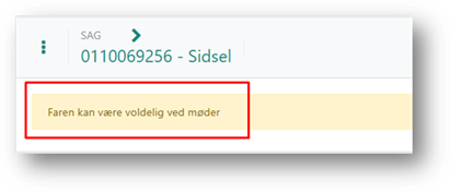 OBS! Når der er tekst i feltet Advarsel, kommer der en gul bjælke lige under sagsmenuen, hvori bemærkningen står. Denne kan ses på sagen hele tiden.
