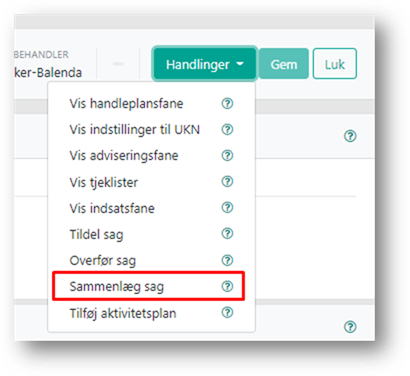 efter sammenlægningen. Du skal herefter afslutte Handleplanen på den anden sag.